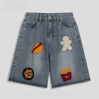 Designed Towel-Embroidered Denim Shorts | Unisex Summer American Streetwear | Loose High-Street Wide-Leg Mid-Length Shorts